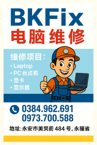 BKFIX 电脑维修服务 —— 永福-永安-值得信赖的专业技术中心 在数字化迅速发展的时代,电脑已经成为工作、学习与生活中不可或缺的重要工具。一旦电脑出现故障,不仅影响效率,还可能造成数据损失。BKFIX 专注于提供 专业、快速、可靠的电脑维修服务,致力于为永福地区的客户带来最安心、最省心的技术支持体验。 🔧 我们的服务项目 1. 台式机与笔记本全面维修 开机无反应、自动重启 蓝屏、死机、系统运行缓慢 过热、风扇噪音大 主板、内存、电源、SSD/HDD ...
